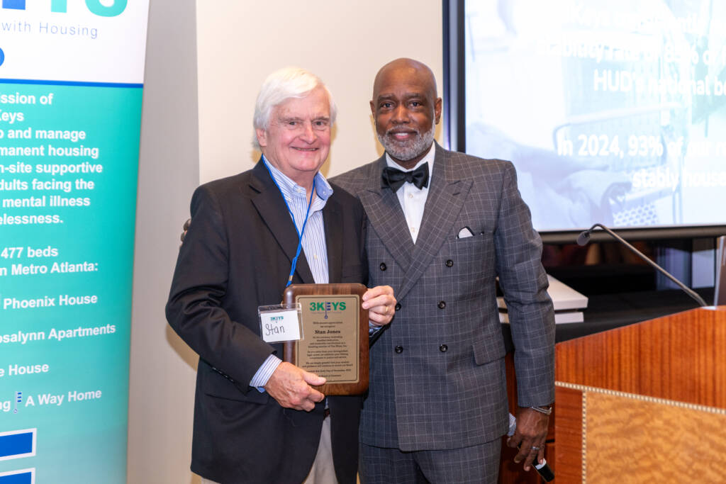 In addition, two plaques were presented to 3Keys board members: Stan Jones and David Lambrecht. Stan was the inaugural Chairperson of Project Interconnections (3Keys’ prior name) and helmed the first-ever board meeting in January 1988. His experience working on mental health issues for Jimmy and Rosalynn Carter in Washington and Atlanta led to his founding role.
